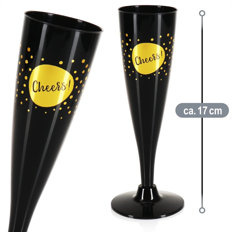 - Box contents: 16 x champagne cups. Material: plastic. Dimensions of each cup: approx. 17 x 5 cm (height x diameter). Maximum capacity: approx. 130 ml. Features: dishwasher-safe. Colour: black, gold (selection varies and is subject to stock)