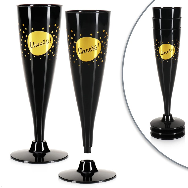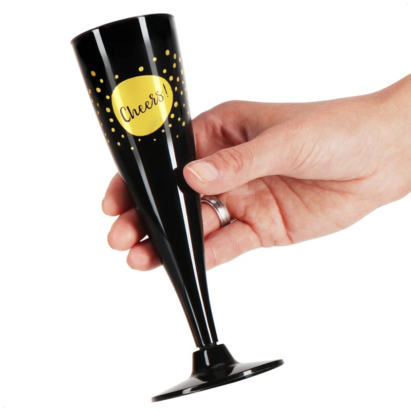 - Perfect for on the go: the black plastic champagne flutes are ideal for outdoor use, whether for barbecues, camping, festivals, on the beach or when travelling