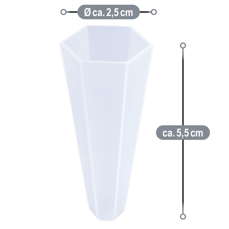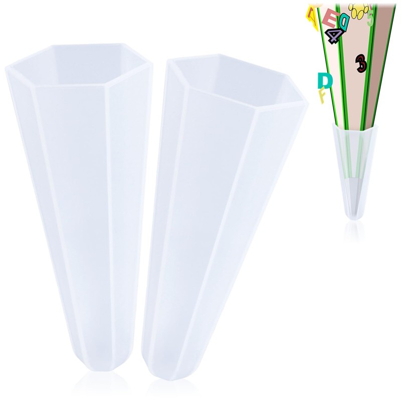 - Box contents: 2 x school cone tips. Dimensions: approx. 2.5 x 5.5 cm (diameter x height). Material: plastic. Colour: transparent. Shape: hexagonal
