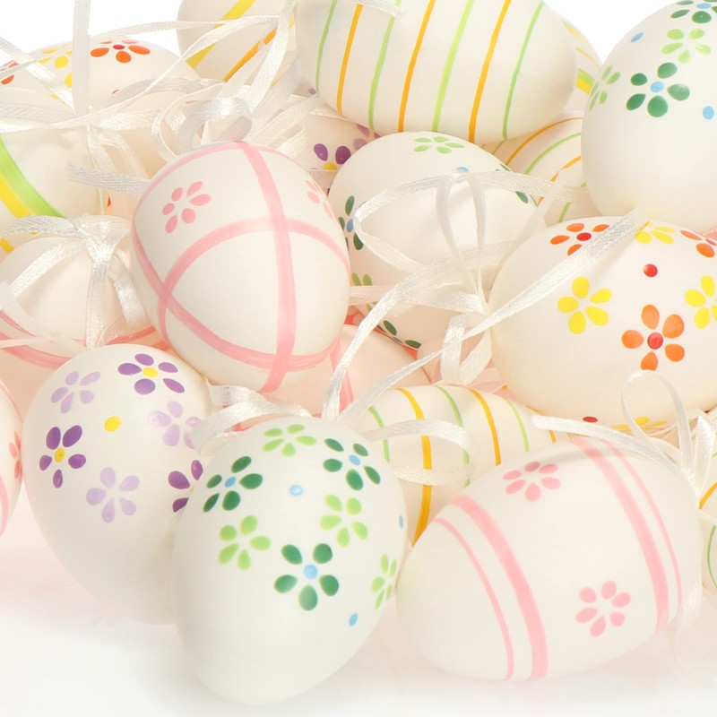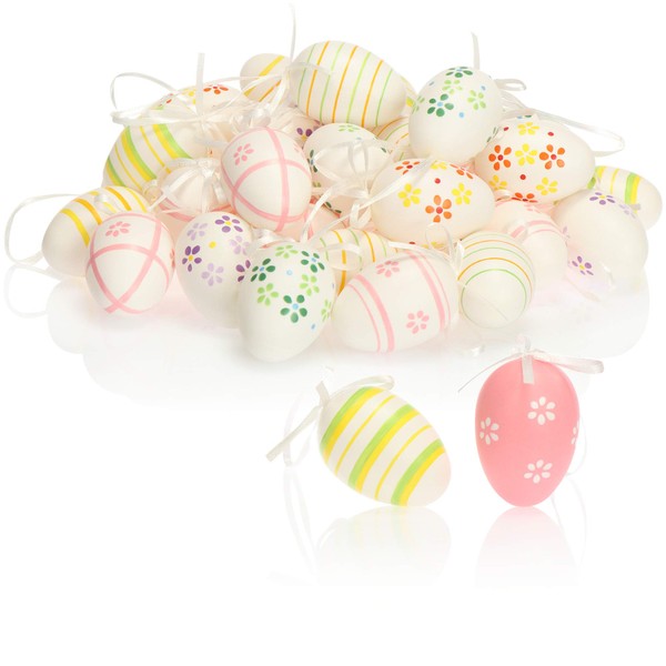 com-four® 36x Hand-Painted Easter Eggs to Hang Up - Pastel-Coloured Easter Decorations with Great Patterns - Decorative Easter Eggs with Ribbon - 6 cm