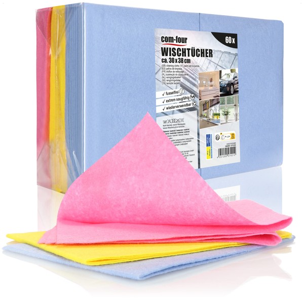 com-four® 60x Haushaltstücher, extrem saugfähige und strapazierbare Allzweck-...