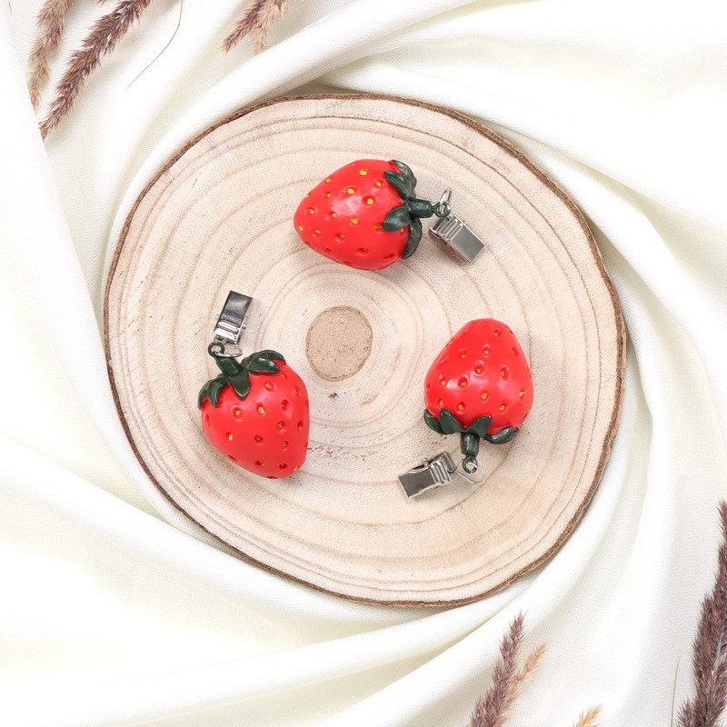 The tablecloth weights in strawberry design can be easily attached to a tablecloth thanks to the clamp.