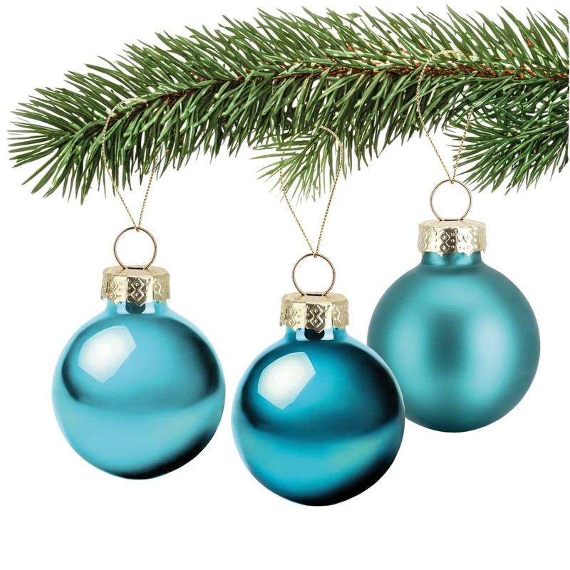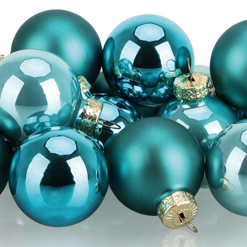 - Contains: 20 x Christmas tree baubles. Dimensions: Diameter: 3 cm. Colour: turquoise in matt and glossy. Silver-coloured hanger. Material: Glass.