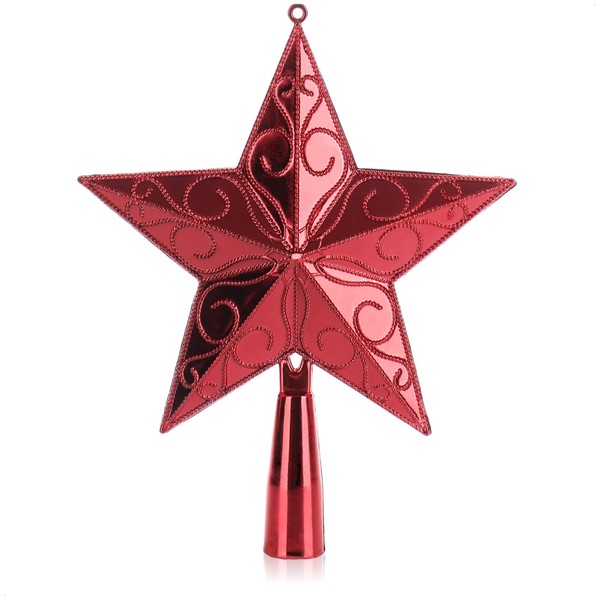 com-four® Christmas Tree Topper in Star Shape - Red Star for Christmas Tree Topper - Christmas Tree Decoration - Plastic Christmas Tree Decoration