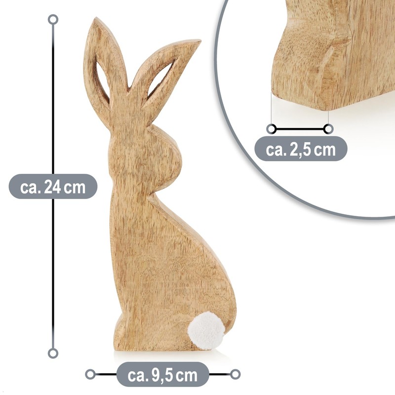 - Box contents: 1 x decorative rabbit. Dimensions: approx. 24 x 9.5 x 2.5 cm (height x width x depth). Material: mango wood. Colour: brown