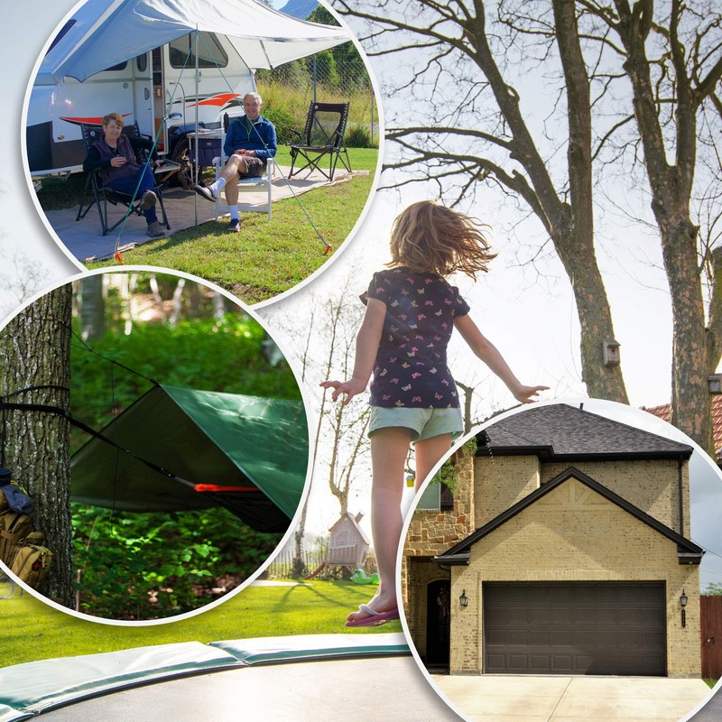 - Function: The installation of a tension spring reliably absorbs hard shocks and gusts of wind on the tent and awning and also allows a comfortable swing of the hammock!