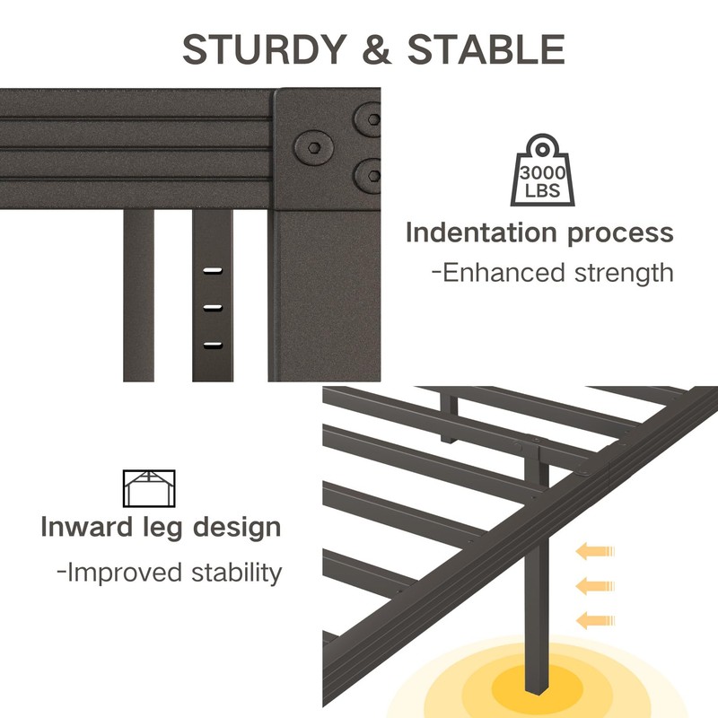 • HEAVY DUTY:Queen size bed frame is made of durable steel with a black sleek surface which is thicker and sturdier than others