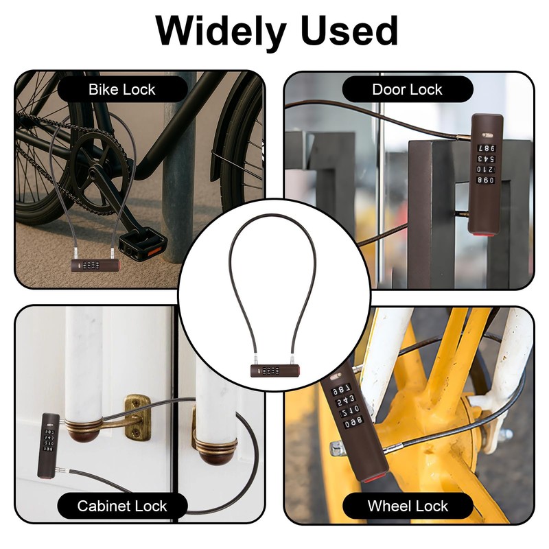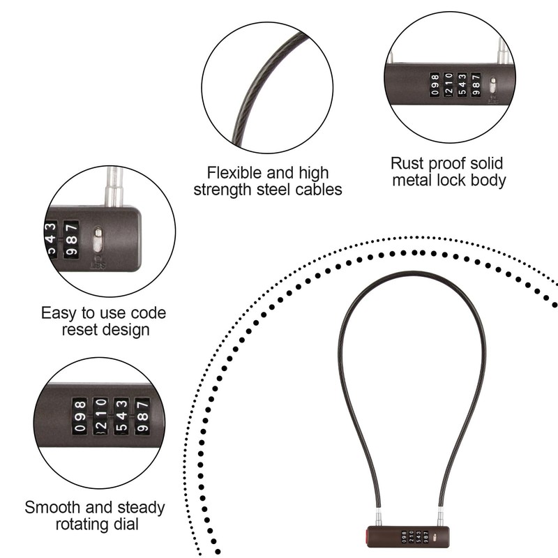 - Anti-theft security steel cable: The cable lock is made of high-strength braided steel wire that is highly resistant to cutting. Steel wire with pvc coated providing both strength and flexibility, enhancing corrosion resistance. Premium zinc alloy lock body reliable protection elegant finish and rust-resistant for lasting use