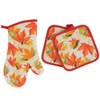 Combined Fall Kitchen Pot Holder and Mitt - Autumn Oven Mitt and Pot Holder S...