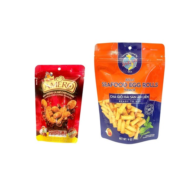 Combo - Cappuccino Coffee Peanuts and Mini Egg Rolls Ready to Eat - Dau Phong Ca Phe Cappuccino and Cha Gio Mini An Lien - Product of Vietnam