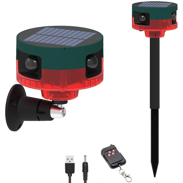 Comboss Solar Bewegungsmelder Alarm - 360°Bewegungsmelder Hundegebell mit 130 dB lauter Geräuschemacher, Aufnahmefunktion, 13 Arten von Blitzlicht-Soundkombinationen für Hause, Bauernhof-red