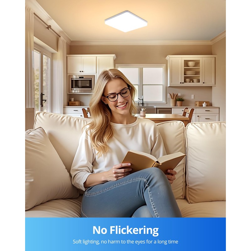 - EYE CARE COMFORT The flicker-free designed ceiling light protects your eyes during prolonged use and reduces eye fatigue and headaches caused by work.