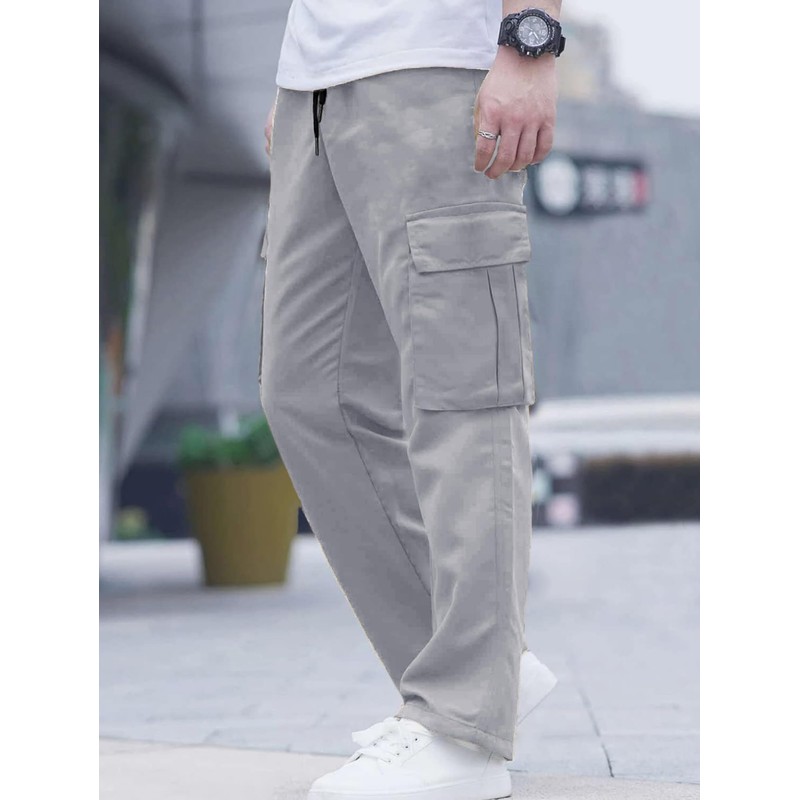 Comdecevis Men's Casual Cargo Pants Workout Joggers Stretch Sweatpants Hiking Drawstring Tactical Pants with Multi Pockets Medium Grey