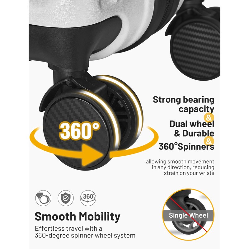 - 【360°DOUBLE SPINNER WHEELS】Four multi-directional double spinner wheels benefit from new soft TPE, ensuring smooth 360°rotation. The double wheels will not involve any weed or other small rubbish during usage as for its advanced design.