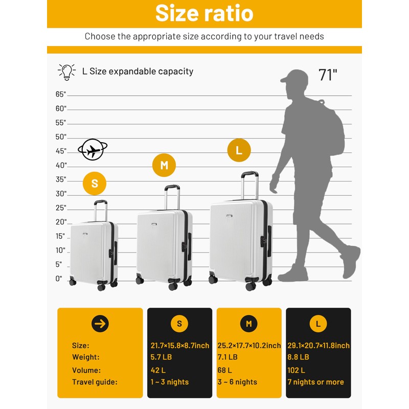 - 【THREE DIFFERENT SIZE】20inch and 24inch luggage is perfect for business and personal travel, The 28-inch suitcase is ideal for family trips and long trips.