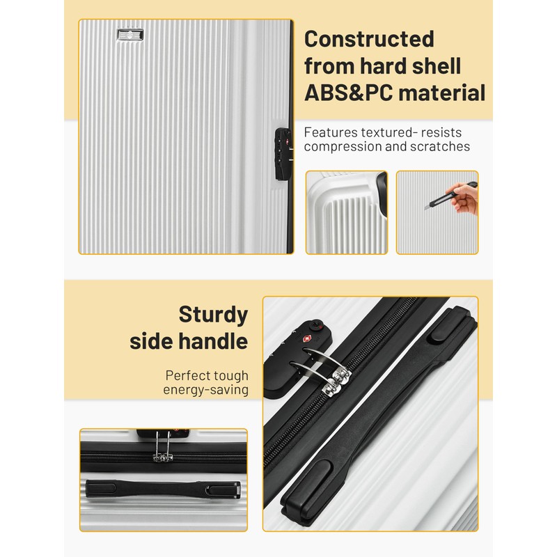 - 【STURDY CONSTRUCTION】Lightweight yet durable shell made of quality PC+ABS materials, strength and durable ensure this hardshell luggage withstand the rigors of travel while remaining lightweight for easy maneuverability, Can with stand any forms of rough handling.
