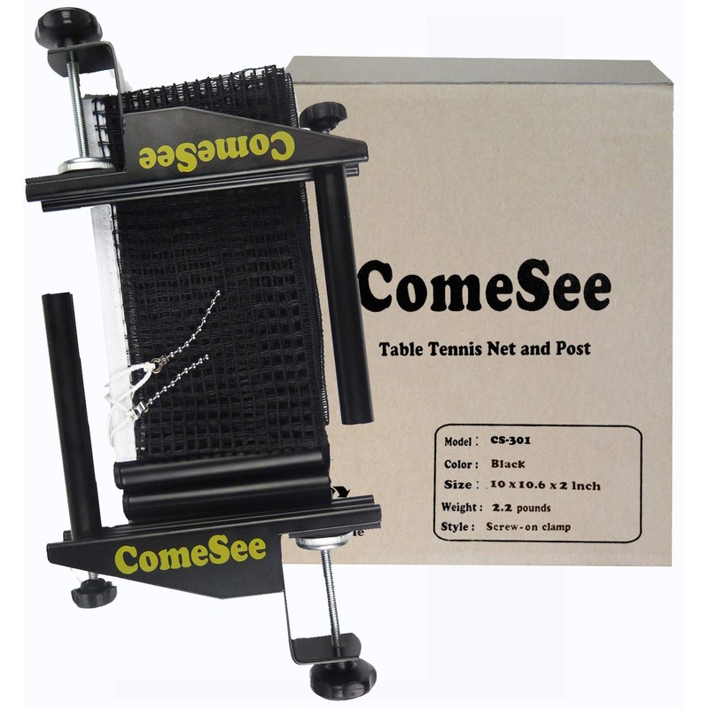 Comesee Professional Table Tennis Ping Pong Net Post Set Strength Screw Clamp with Net Clip Insert, 1.5 Inch Width Grip Holder, Tension and Height Adjustable Easy Set Up (Black)