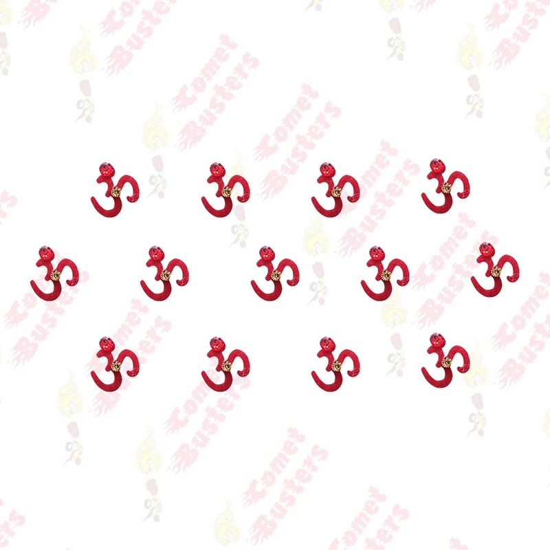 Comet Busters Fancy Red Om Bindi With Stone Work (6cm) (BIN1145)