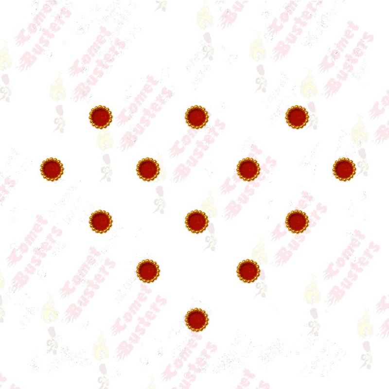 Comet Busters Red Round Bindis With Gold Beads Border (5 mm) (BIN806)