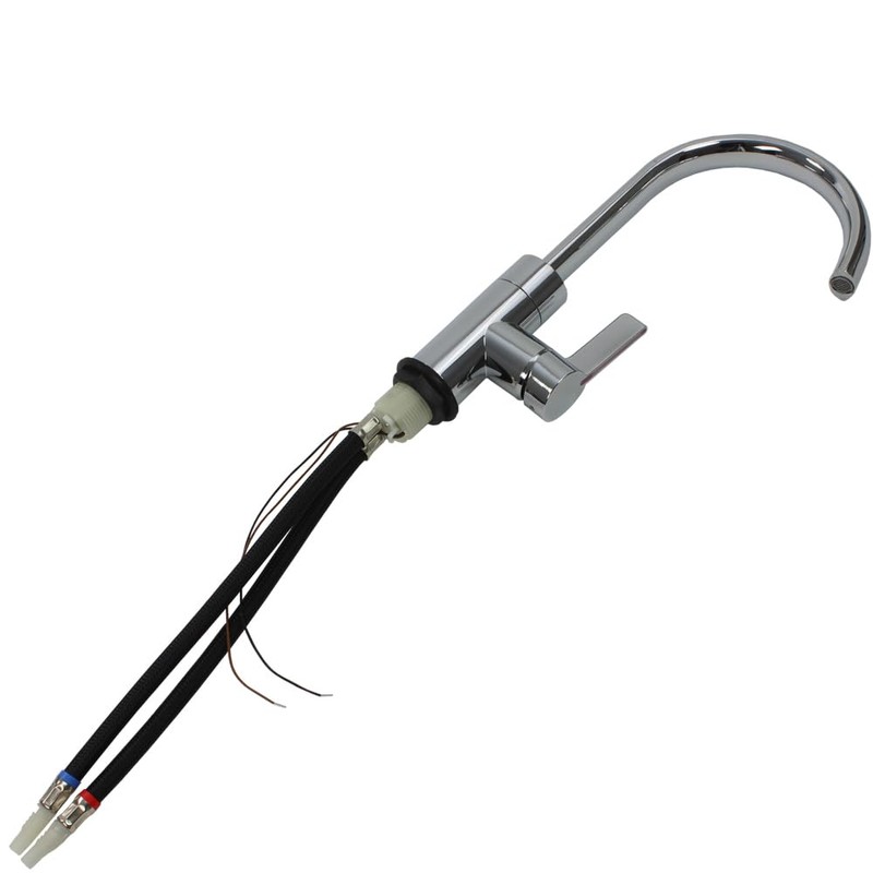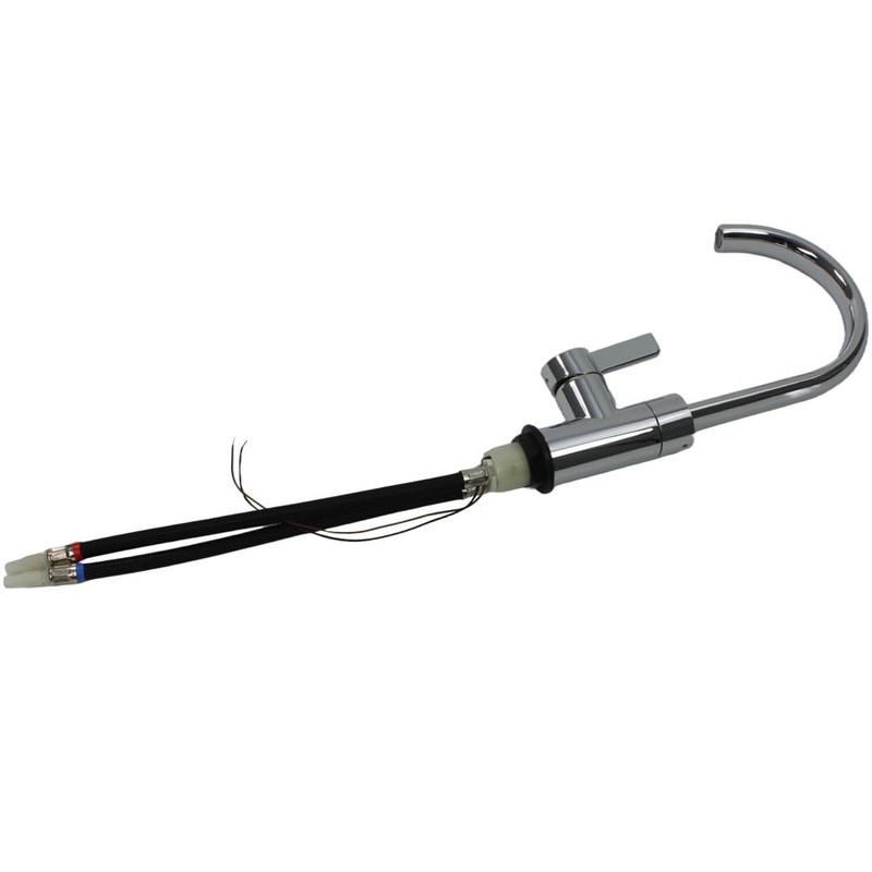 - By tilting the mixer handle, the switch for the pump is activated. Turn the mixer to the left or right, you can easily adjust the desired temperature.