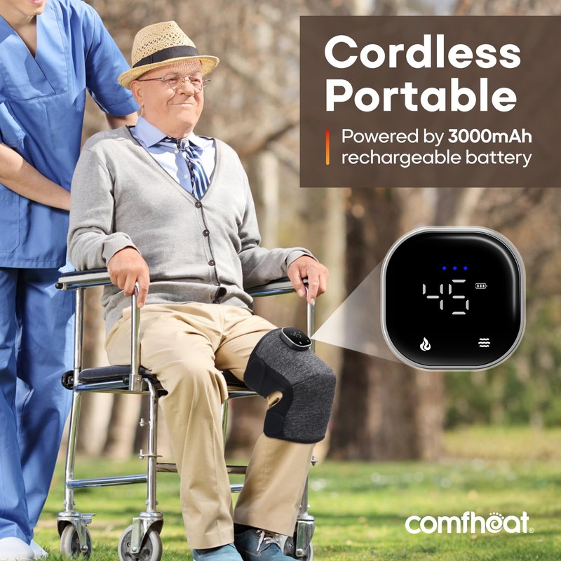 - Cordless Convenience for Any Occasion: Our cordless heated knee wrap offers ultimate convenience, allowing you to enjoy soothing heat and vibration therapy at home, the office, or while traveling. Featuring a user-friendly LED touch screen, this knee brace massager provides easy and clear control of your settings for a personalized experience wherever you are