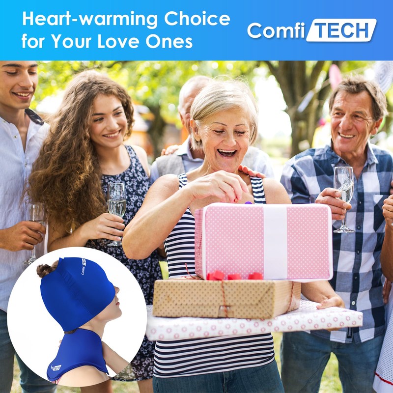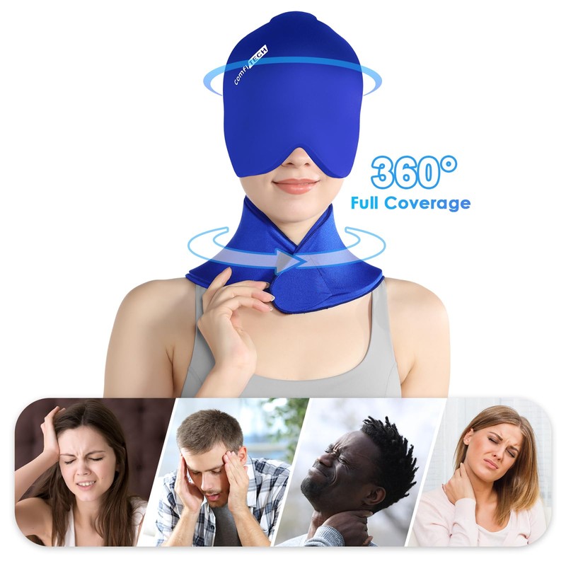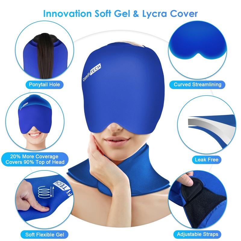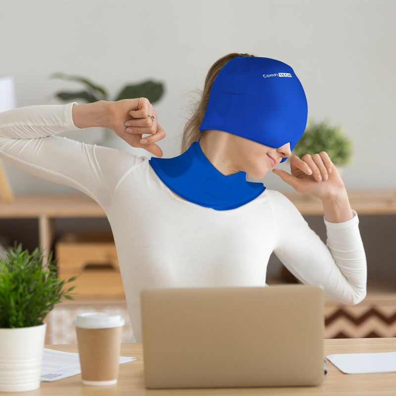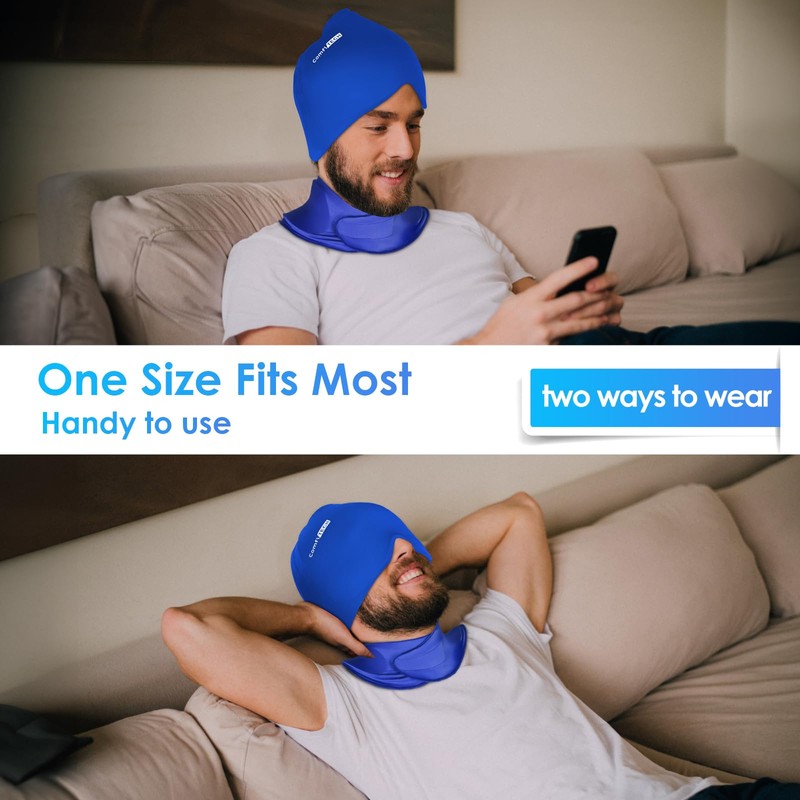 ComfiTECH Cold Cap and Neck Ice Pack Wrap Gel Combo, Care Package for Head and Cervical, Blue