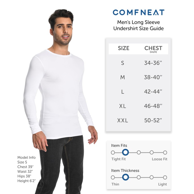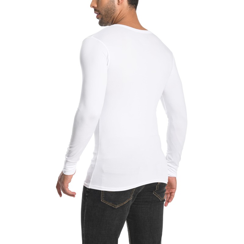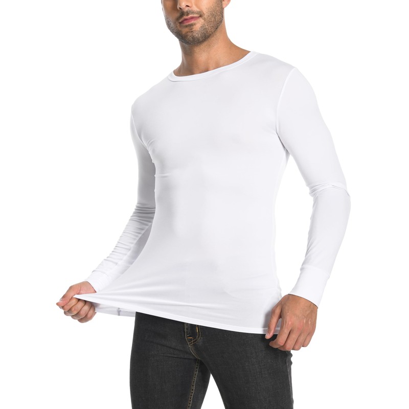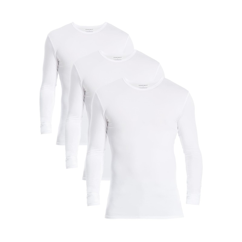 Comfneat Men's 3-Pack Thermal Undershirts Long Sleeve Base Layer (White 3-Pack, XL)