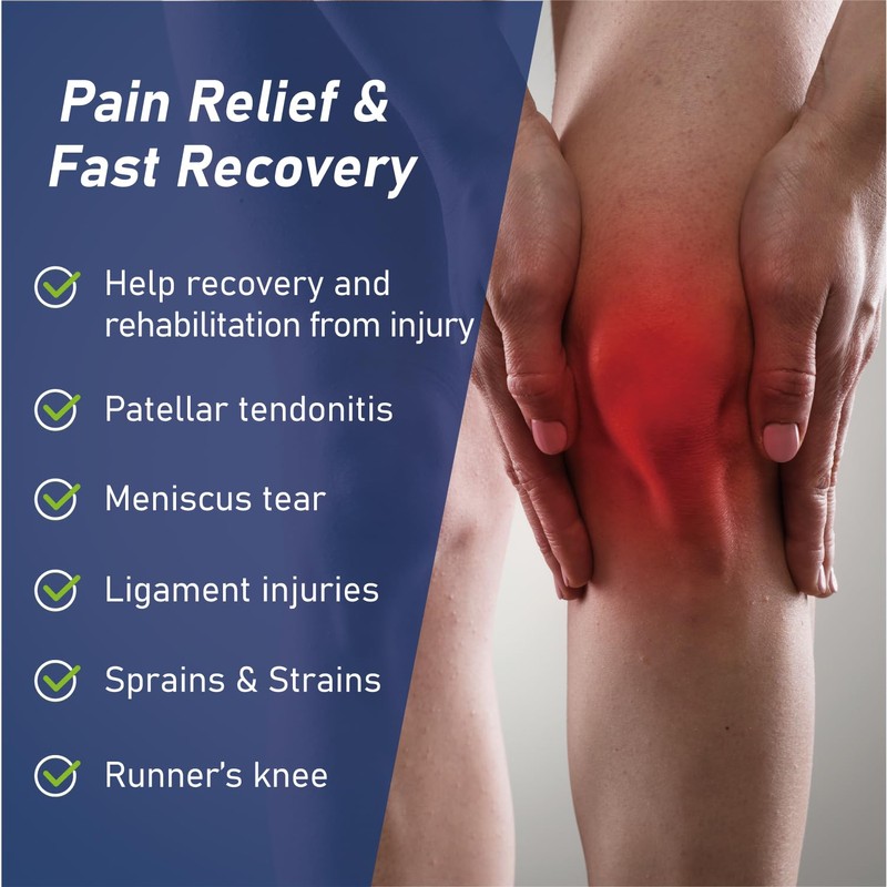 - ✅ 【INSTANT PAIN RELIEF & FAST RECOVERY】Comforband adjustable knee brace is medically engineered to provide pain relief and aid recovery from knee Sprains, Strains, Patellar tendonitis, Runner’s knee, Jumper’s knee, ligament injuries, Meniscus tear, etc. by providing optimal medial/lateral stabilization to weak or injured knee joint. All to help you recover faster and support your joints while being active.