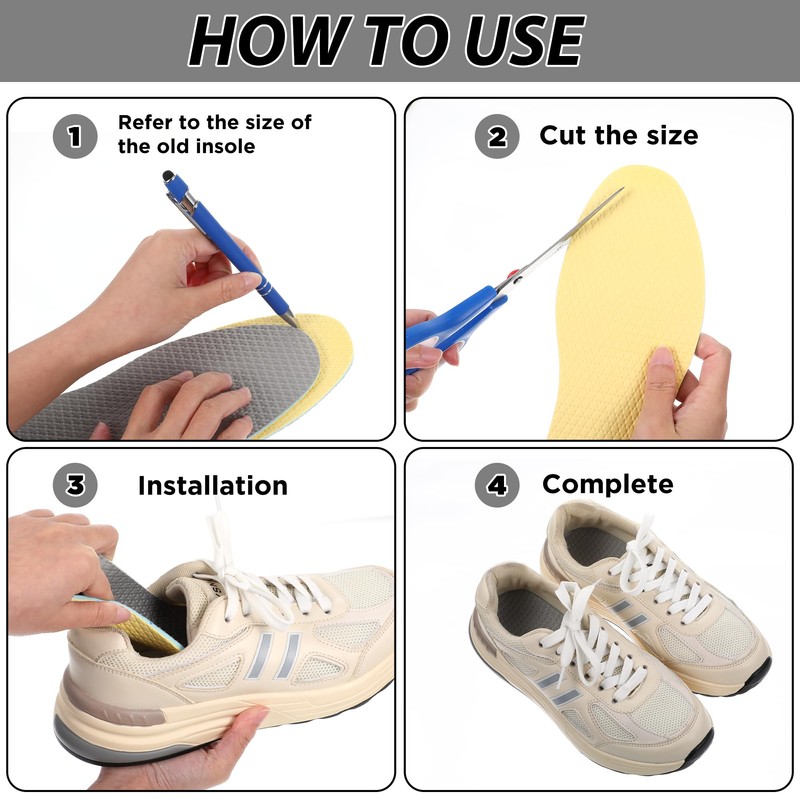 • Widely Used: Cuttable carbon fiber insoles can match most shoes within the size range, ideal for replacement or as a supplement to the current insoles of your shoes. You can even use cushioning orthotic shoe insole as a disposable insole if you like. Memory foam shoe inserts can fully absorb sweat, protect your shoes and extend the life of your shoes.