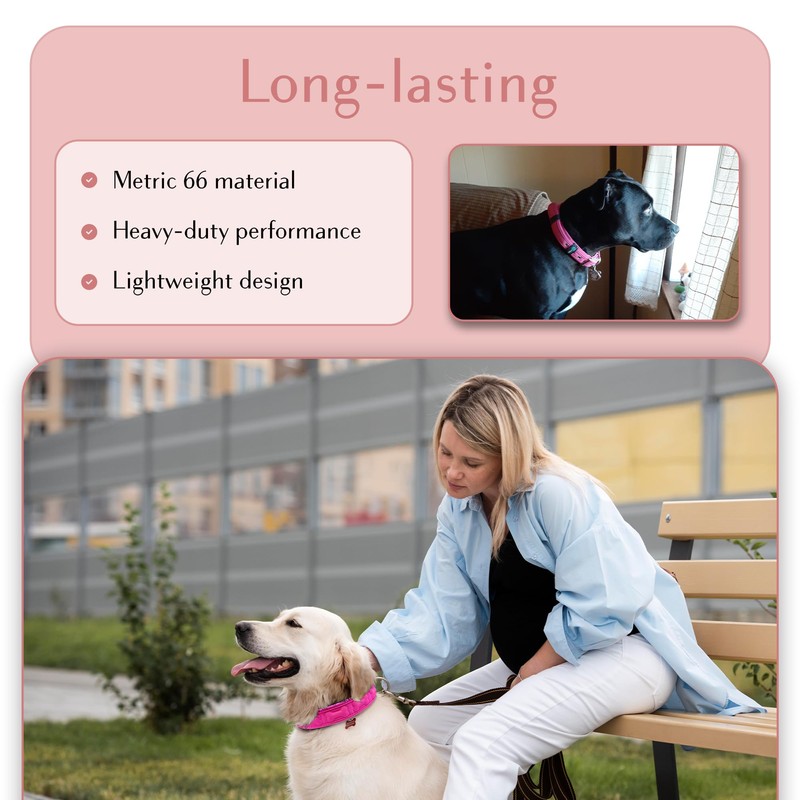 - Durable and lightweight: Made with Metric 66 material, the dog collars are incredibly lightweight yet durable. This ensures that your dog can wear it all day without feeling weighed down, and the strong construction ensures long-lasting use.