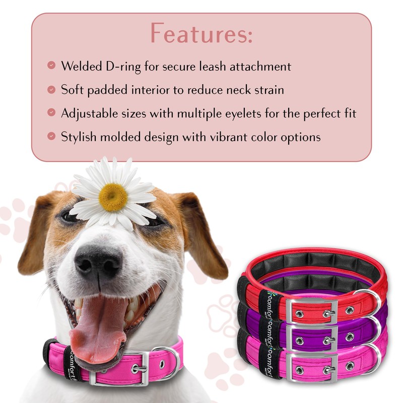 Comfort Fit Soft Padded Dog Collar with Adjustable Buckle - Lightweight, Breathable Dog Training Collar with Customizable Fit - Durable Heavy Duty Dog Collar - Red, S, Neck 12-14"