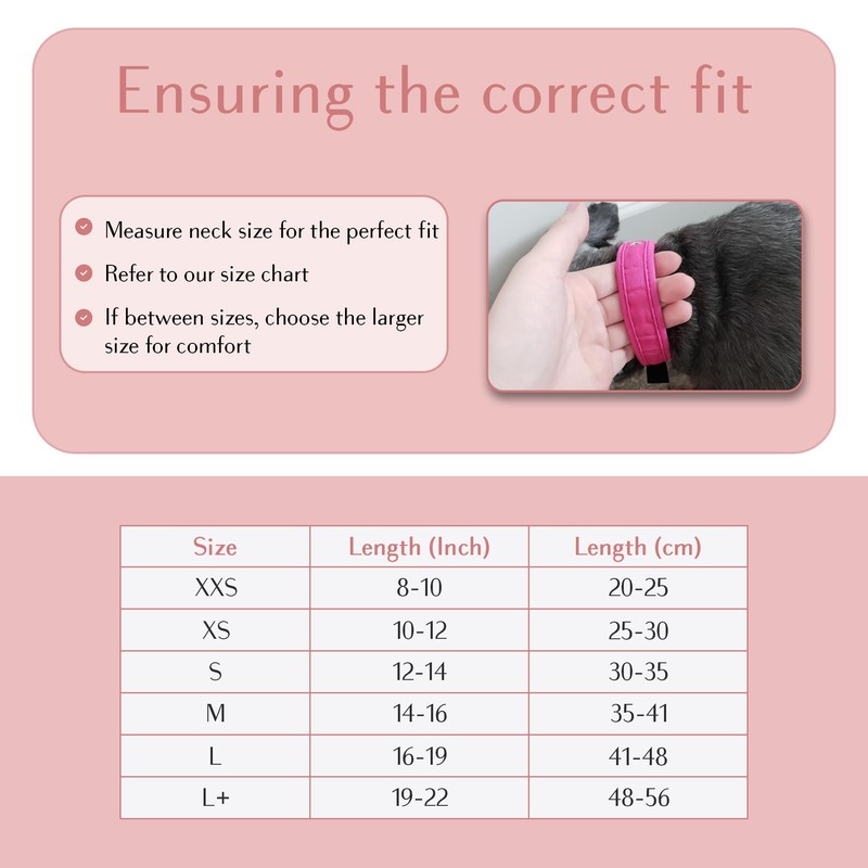 - Custom-fit: This dog collar is available in six sizes, ranging from XXS (8-10 inches) to L+ (19-22 inches), ensuring a perfect fit for all breeds. The adjustable design allows for a snug yet comfortable fit, preventing discomfort or choking.