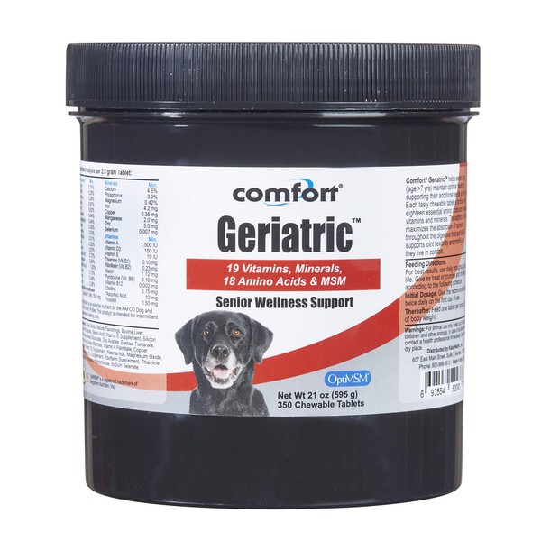 COMFORT Geriatric Supplement for Dogs, 350 Count, Contains MSM, Superoxide Dismutase, Ester-C, 19 Vitamins and Minerals & 18 Amino Acids, Made in The USA