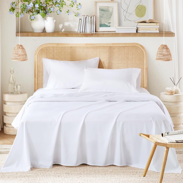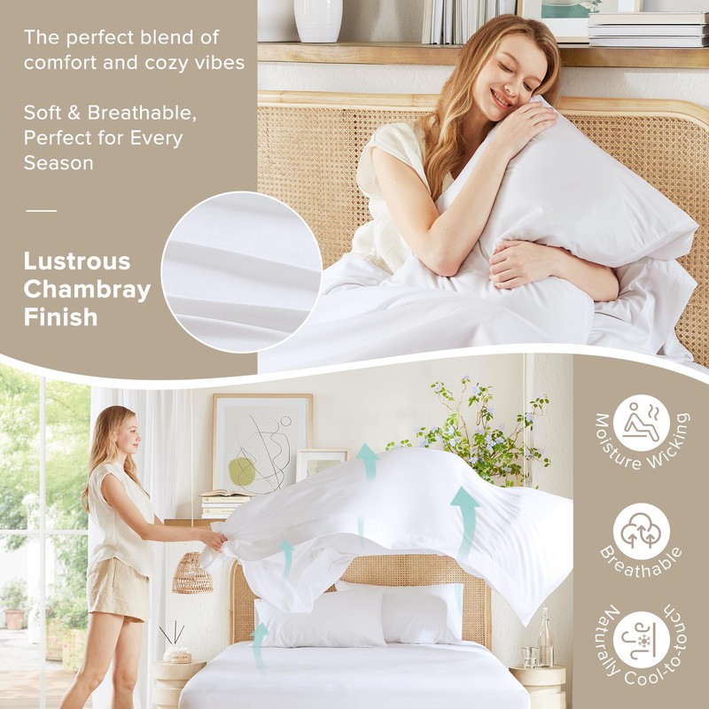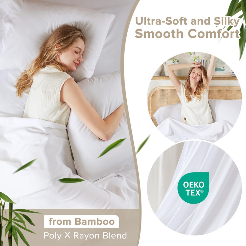 Comfort Spaces Cooling Sheet Set Poly X Rayon Blend (Rayon Derived from Bamboo), Soft, Silky, Lustrous, Heathered Finish Twin XL Sheets Breathable All Season Sheet Set, Twin XL, White, 3 Piece
