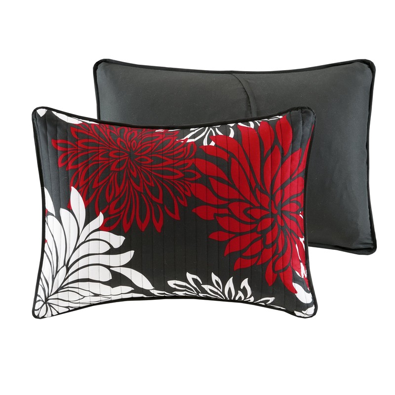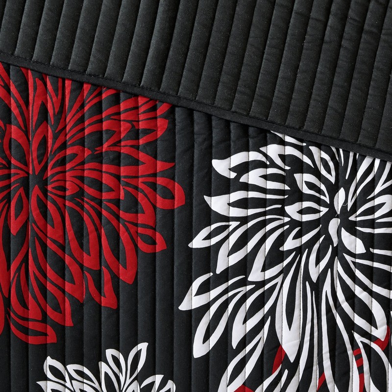 Comfort Spaces Enya Quilt Set - Casual Floral Print Channel Stitching Design, All Season, Lightweight Coverlet, Cozy Bedding, Matching Shams, Decorative Pillows, Full/Queen(90"x90"),Red/Black 3 Piece