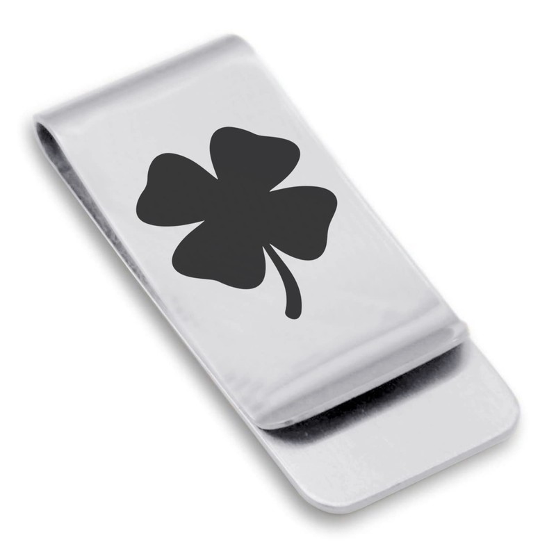 Comfort Zone Studios Stainless Steel Four Leaf Clover Good Luck Charm Classic Slim Money Clip Credit Card Holder, Silver