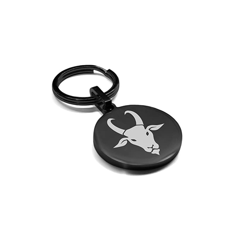 Comfort Zone Studios Stainless Steel Year of the Goat Zodiac Round Medallion Keychain Circle Ring, Black