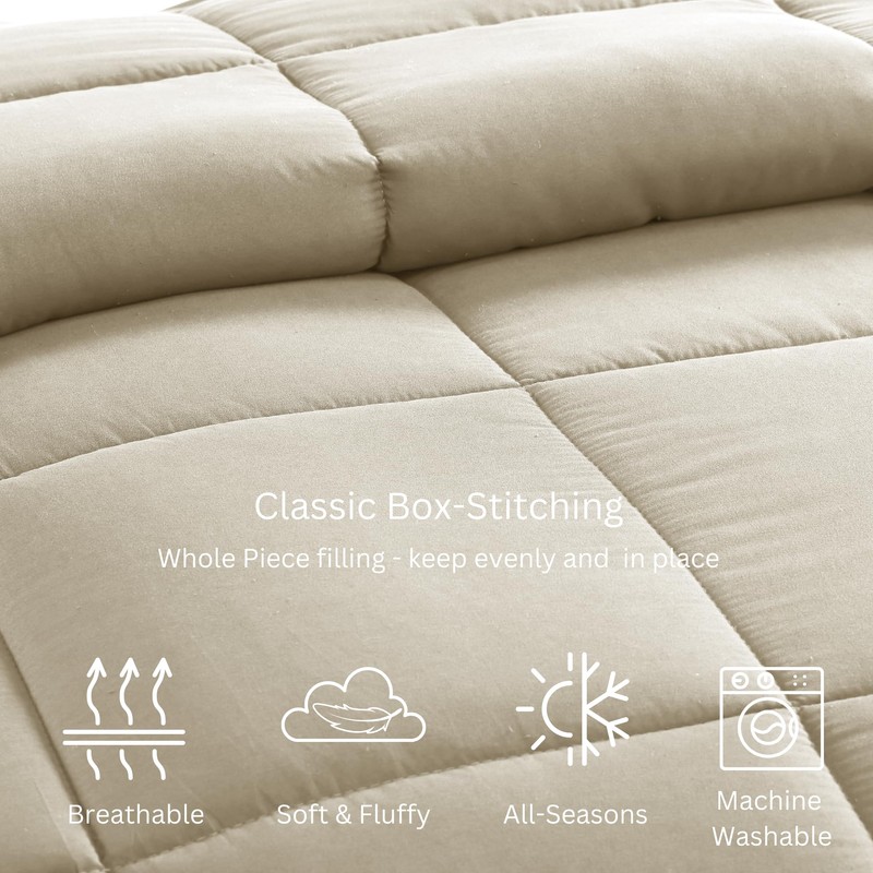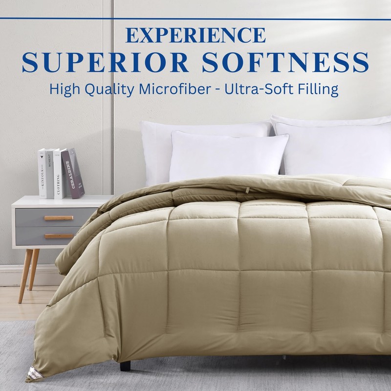Comforter Down Alternative Microfiber Quilted Solid Comforter/Duvet Insert - Ultra Soft Bedding - Medium Warmth for All Seasons Full Comforter - Linen
