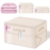 Comforter Storage Bag, Ultra Space Saving Compression Organizer Bags with Clear Window and Handle, for Blankets, Pillows, Bedding, Duvets, Sheets, and Winter Clothes(Beige, L, 21.3 * 16.5 * 11.8in)