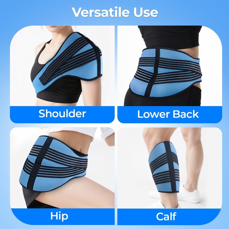 - Double-pull Tension Straps - This back ice pack is specially built with 2 adjustable tension straps which can provide extra compression to your back, make the ice pack tight to your targeted area to achieve a quicker pain relief and deeper level of cold therapy.