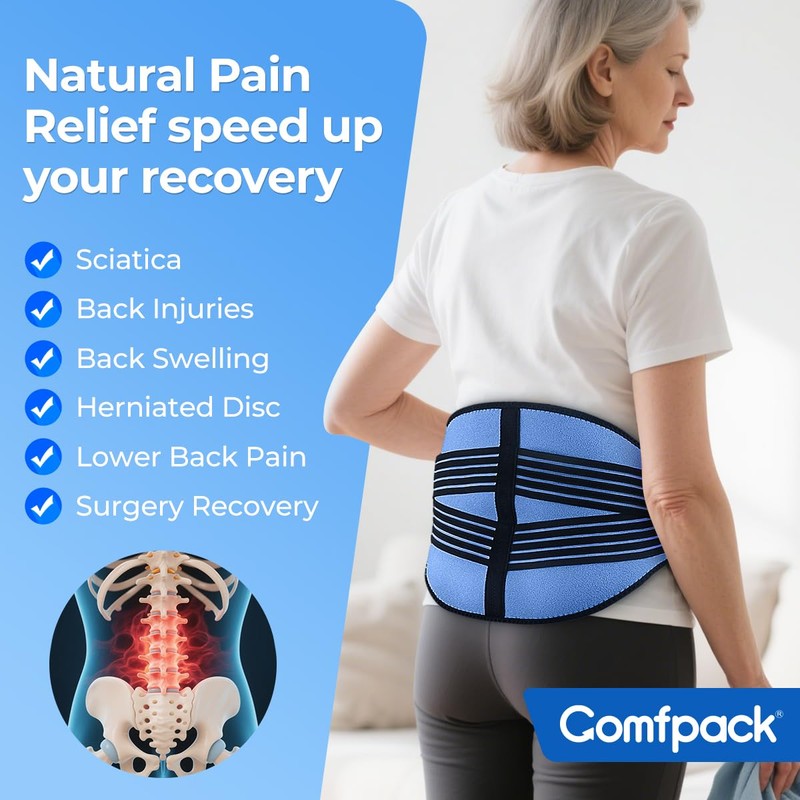 - Targeted Back Pain Relief - Comfpack back ice pack is designed to alleviate pain associated with lower lumbar, sciatic nerve pain, back injuries, degenerative disc disease, and coccyx tailbone pain, can also speed up back surgery recovery. Great gift for those who sitting or standing for a long time.