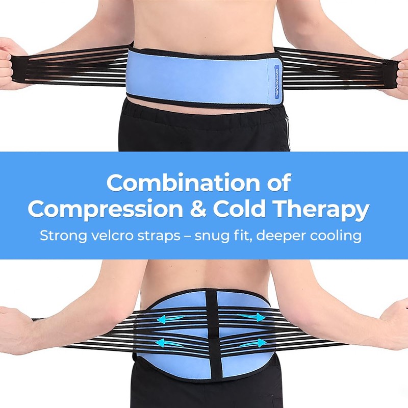 - Perfect Fit For Waist Contour - Comfpack back ice pack wrap is designed to contour around your midriff and lower back, and the ice pack is wider enough to cover more area for targeted cold therapy. The neoprene is breathable and soft so it doesn't cause any itching.