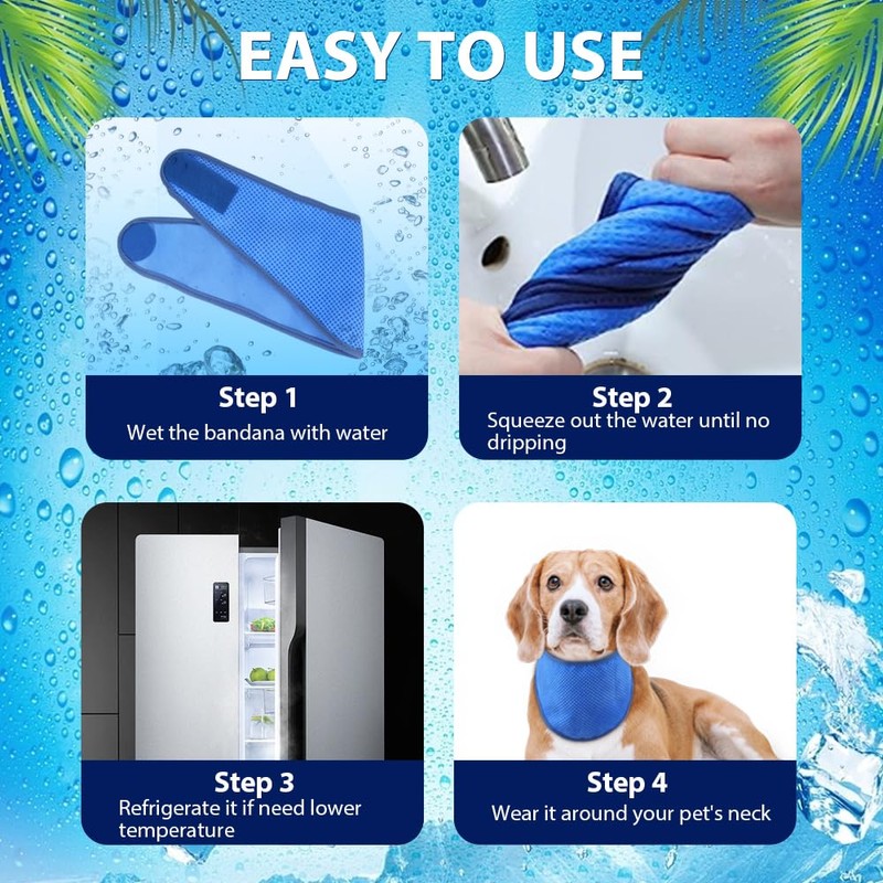 COMFPET Dog Cooling Bandana Neck Ice Wrap, Instant Cooling Pet Scarf for Summer Hot Weather, Adjustable Breathable Reusable Scarf for Outdoor and Indoor Use, Extra Large(Blue)