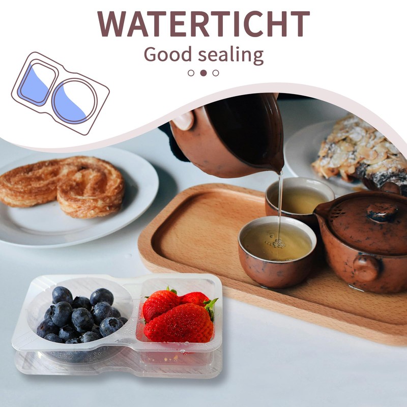- Experience the ease of separating your snacks with our double compartment snack pack containers.This smart design ensures flavors don’t mix,maintaining the freshness and enjoyment of your food,perfect for travel,picnics,or school lunches.
