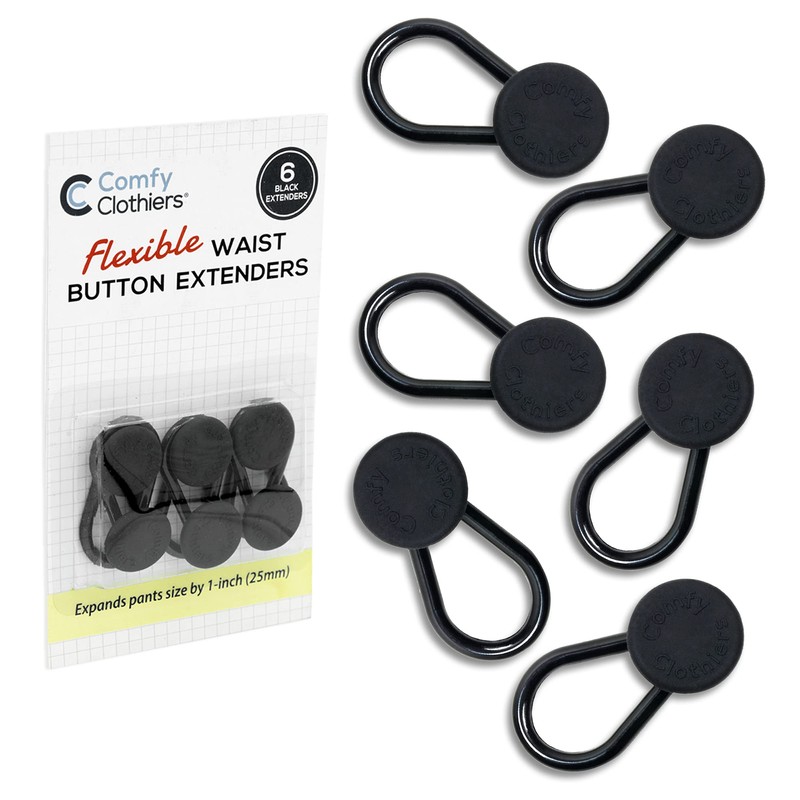 Comfy Clothiers Flexible Button Waist Extenders (6-Pack Black) - Adds 1-2 Inches to Pants Waistline - Jeans, Dress Pants, Shorts, Skirts - No Sewing Required - Men, Women - Net Focus