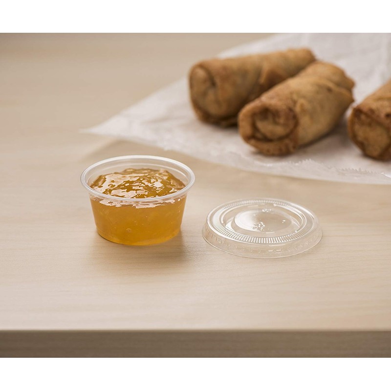 - Plastic jello shot cups, condiment cups, portion cups with lids made of durable crack-resistant polypropylene.