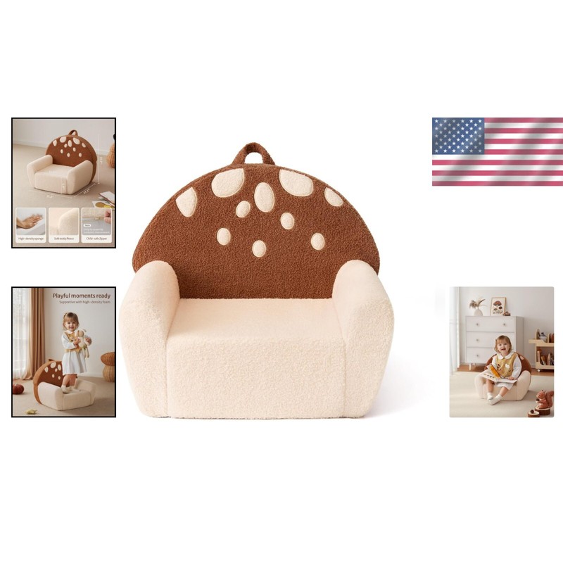 Comfy Toddler Chair - Soft Teddy Fleece Mushroom Design with Removable Cover