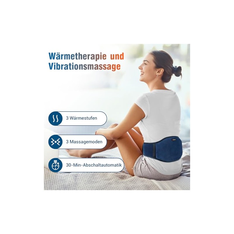 Wärme und Massage: Das beheizte Rückenmassagegerät verfügt über 3 Wärmestufen und 3 Arten von Vibrationen. Verschiedene Farben der Tasten stehen für unterschiedliche Temperaturen und Vibrationen. Rot für die höchste, blau für die mittlere und grün für die niedrigste Stufe.Zusätzlich verfügt es über eine automatische Abschaltfunktion nach 30 Minuten, um Sie auf die Benutzungsdauer hinzuweisen.