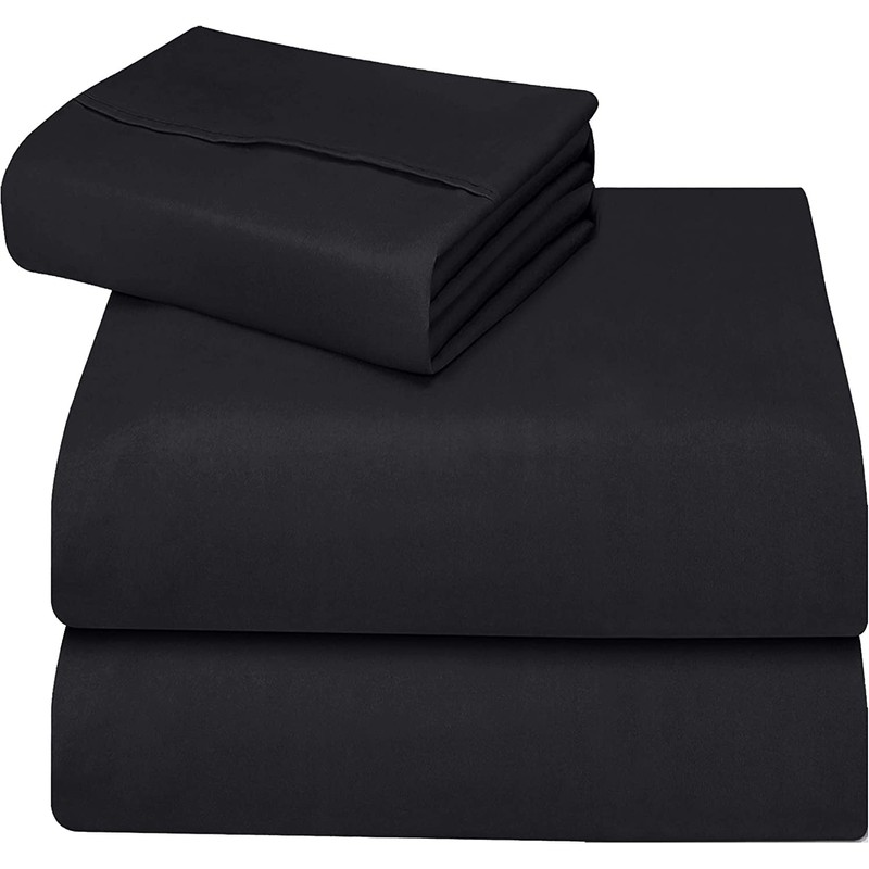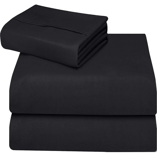 ComfyWell Super King Size Sheet Bed Cover - Deep Pocket 14 inch (35 cm) - Soft Brushed Microfibre Fabric Black Bedding - Shrinkage and Fade Resistant. (Super King (180x200cm), Black)