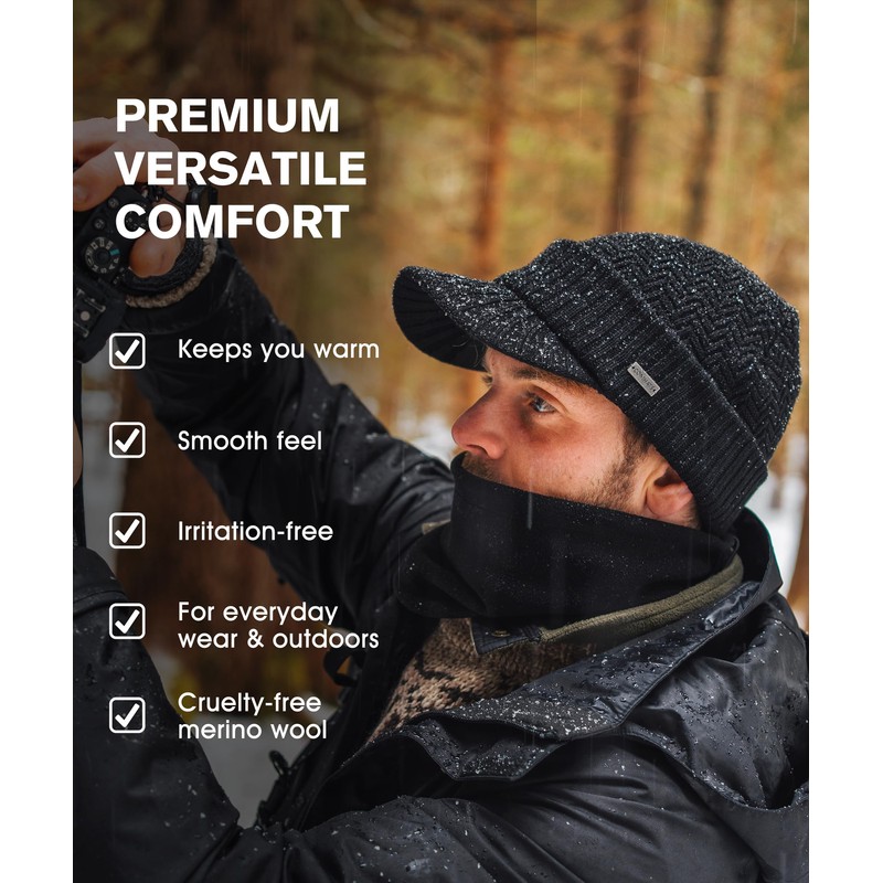- Premium merino wool with fleece lining: made from 50% merino wool with soft fleece lining, our hat offers exceptional warmth and comfort. Enjoy an itch-free feel and moisture control that allows your scalp to "breathe" while staying warm in cold weather.